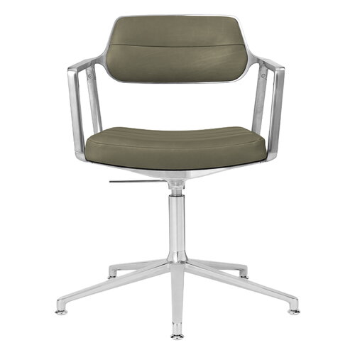 453+ Swivel chair, polished frame - bosco green leather, with gliders