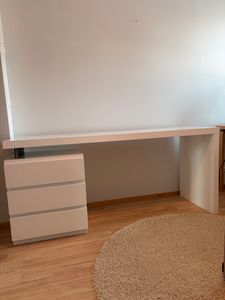 Desk, L tabletop and Kolmonen drawer, white