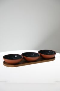 Earth bowl 0,2 L, set of 3 + tray, grey