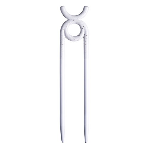 Folk plant stake, Oni, glazed pebble white