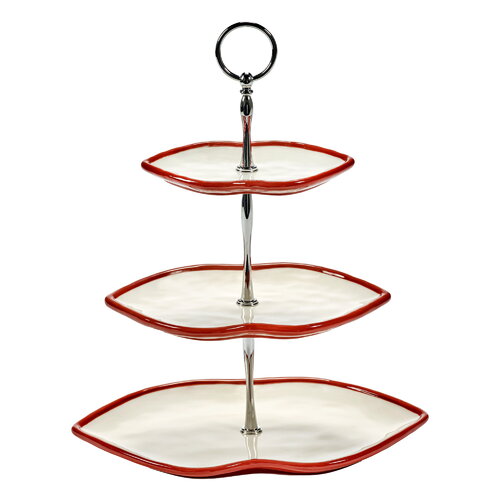 Lips cake stand, three-tier, white - red