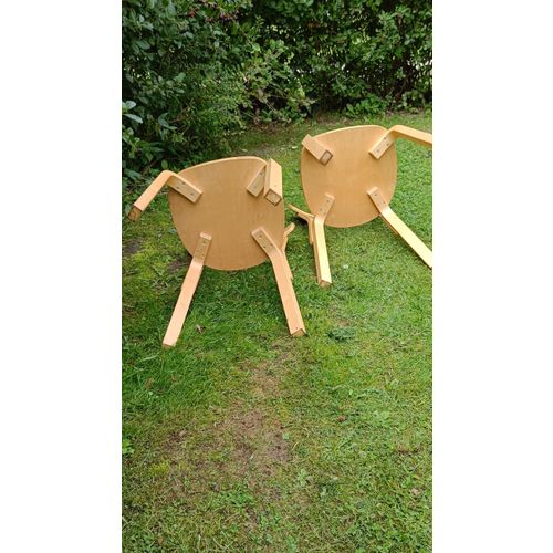 The chairs have light signs of use, some random scratches. The chairs in question are the old height, i.e. approx. 2 cm lower than the newer versions.