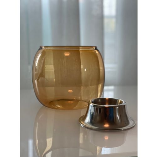 This color has been removed from Iittala's range in 2018. The color is warm yellow. The outer part of the candle lantern is made of blown glass and the inner part is made of polished stainless steel. Use ordinary twine candles in the Kaasa candle lantern. Without the steel part, it is also suitable for storage or as a vase. No signs of use. Original packaging, which is not in mint condition.