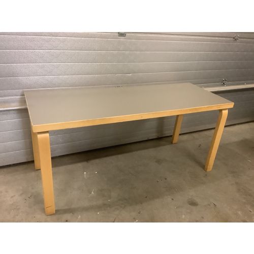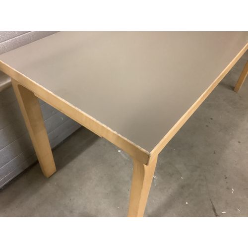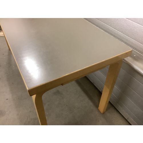 Aalto gray brown laminate surface table which has remained a laminate surface over the course of 50 years. In OK condition. There are dents and scratches on the wooden parts, but the table is still in sturdy condition for hard use.