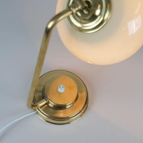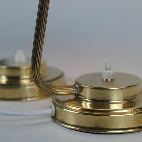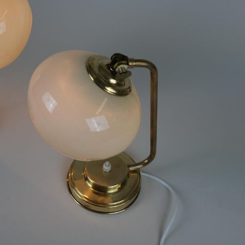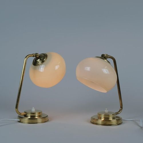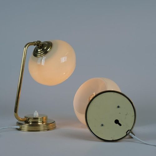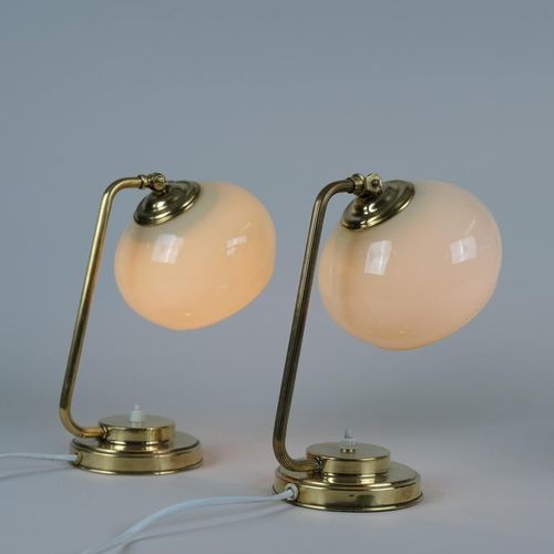 A nice pair of table lamps in brass and blown glass model EV53 made by Itsu in Finland in the 1950s. The glass shades have a beige tone and add a beautiful ambience. Perfect for side tables or night stands. Both lamps are stamped Itsu. The stems are a bit different and the lamps seem to have been restored at some point in their history. Itsu was one of the leading lamp manufacturers in Finland during the middle of the 20th century.Read more