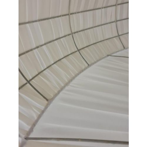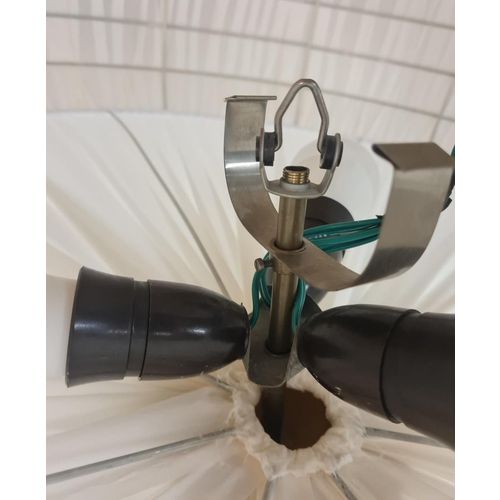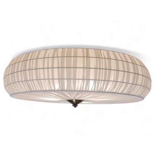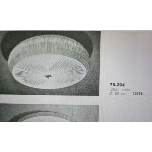 A beautiful and sizable flushmount model 75-204 retailed by Stockmann. The lamp is quite large and covers a considerable area on the ceiling adding a beautiful decorative element with the artistic handmade upholstery that is remade according to the original one and on the original frame. All other parts are also original. A truly stunning piece of decor and not only lighting.