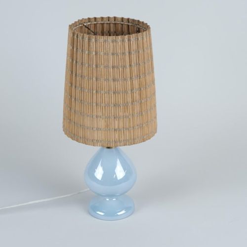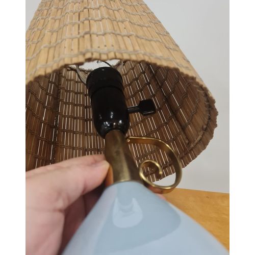 Oriental Blue Glass & Rattan Table Lamp K11-18, Maria Lindeman, Idman 1950s