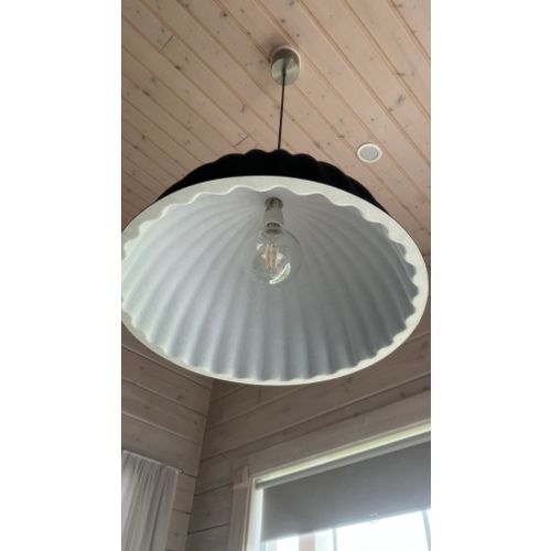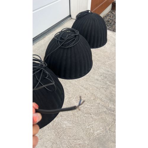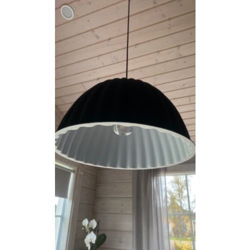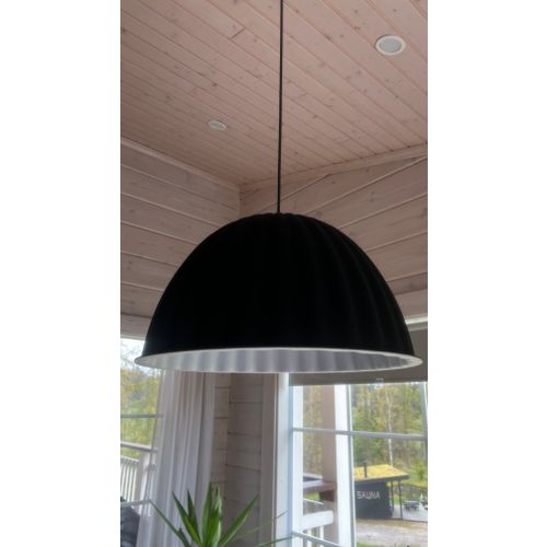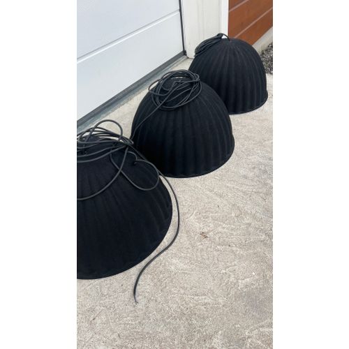 The Under The Bell pendant lamp is made of recycled felt. The lamp offers a soft look and high-quality lighting, which also improves the acoustics of the room. There are three (3) lamps and they can be sold separately or together. The lamps are in good condition but are missing their ceiling cups. (see photo)