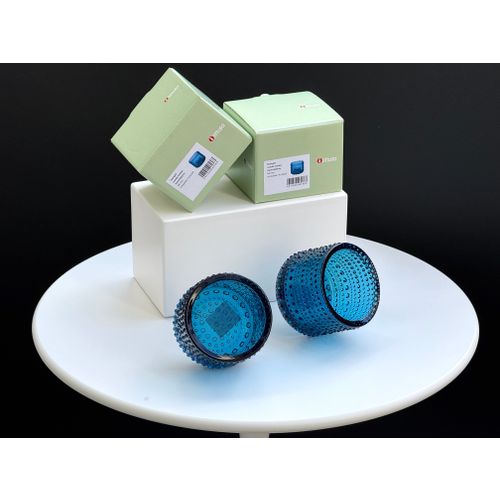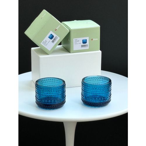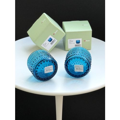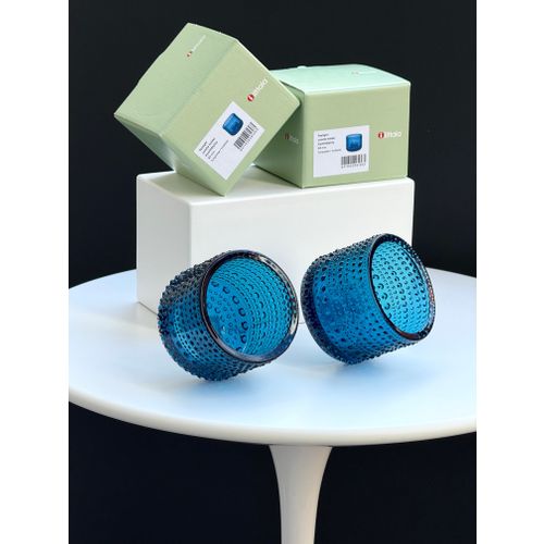 Iittala Kastehelmi tealight candleholder, 64 mm, turquoise, set of 2. New and unused, perfect condition with original packaging and label. Reliable shipping available on request. Please ask for the shipping rate to your country.