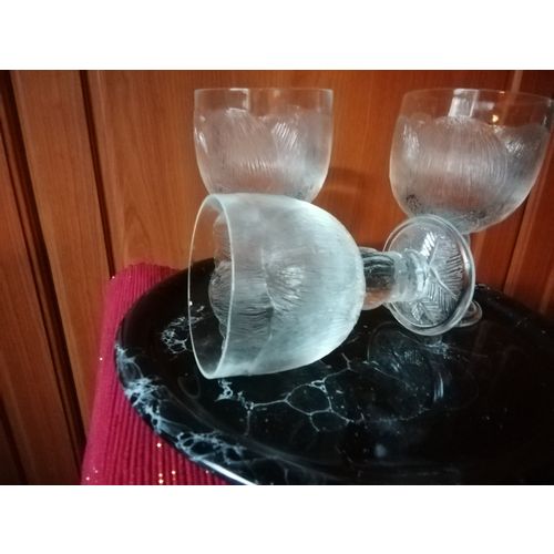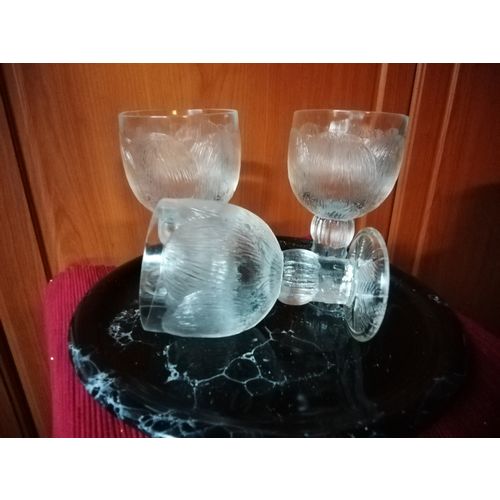 Three wine glasses. Small defect - crack on the top edge of one glass, but on the inside of the edge - does not affect the edge. I can sell only 2 glasses separately if the buyer wants. Otherwise the glasses are in excellent vintage condition, almost like new.