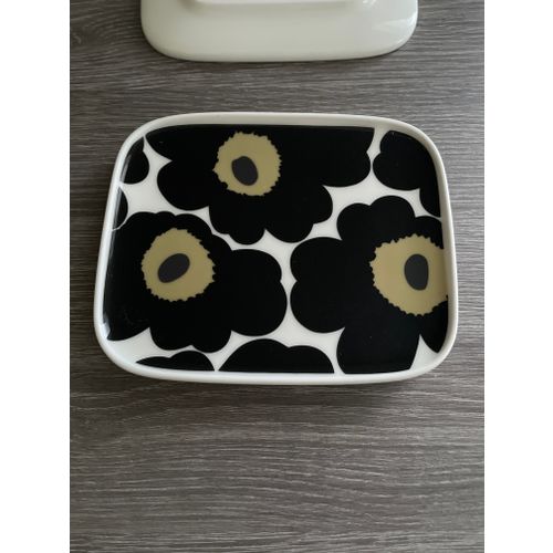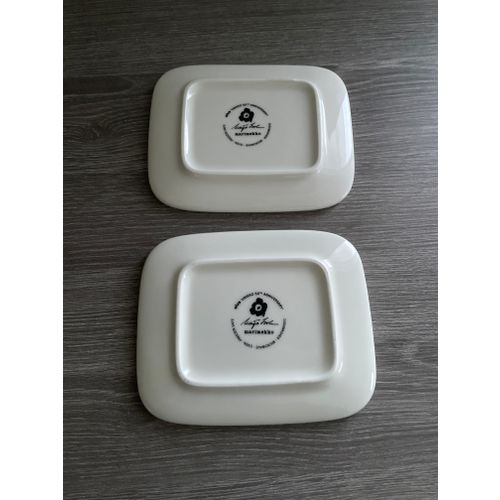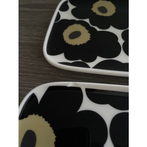 Selling as a set of two Unikko 50th Anniversary small plates designed by Maija Isola. The "50th-Anniversary" stamp of the anniversary model on the bottom of the plate. NOTE! One plate has a small chip in the upper corner, no other defects. Please look closely at the last picture, it shows a close-up of the chip. The defect has been taken into account in the price. The other plate is in excellent condition, no wear or chips. Total price for the plates 30 euros.Read more