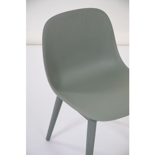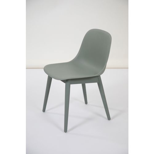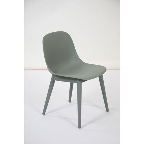 Fiber side chair, wood base, dusty green