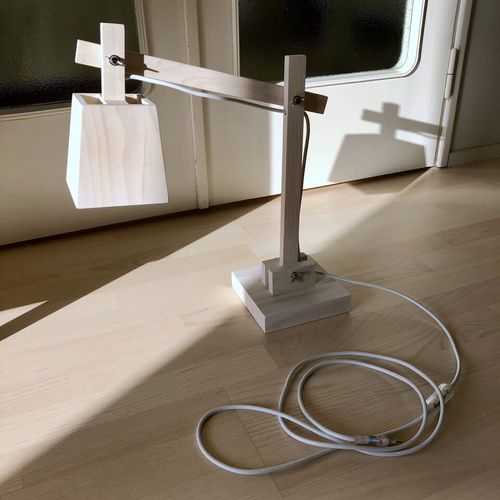 The lamp has been used as a desk lamp for a couple of years. Very good condition, no defects, scratches or marks. Base dimensions 16.5 cm x 16.5 cm, vertical and horizontal arms both approx. 39 cm. Height adjustable, highest point in the pictures approx. 45 cm. A working lamp can be included if desired. Designer Mattias Ståhlbom, TAF Architects. Product fact sheet: https://www.scandinavianobjects.com/somaterial/wood_lamp/images/wood-lamp-taf-architects-muuto-information-sheet.Read more