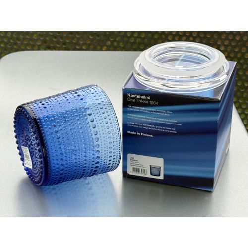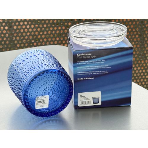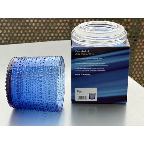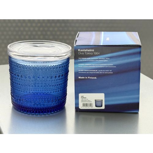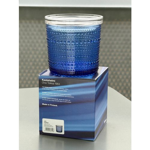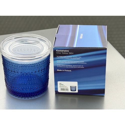 iittala Kastehelmi jar, 116x114 mm, ultramarine / clear Completely unused and in flawless condition, including original packaging and label. Shipping available on request.