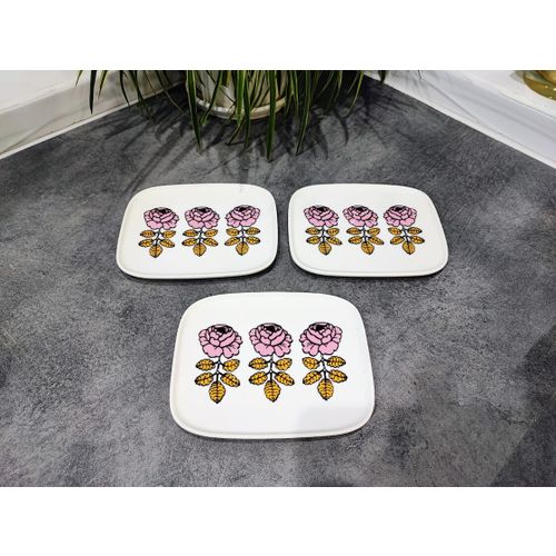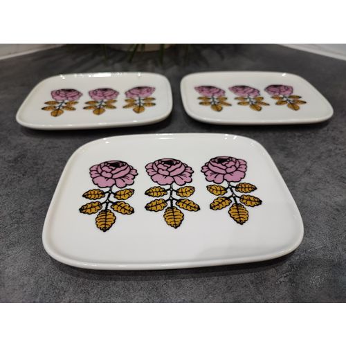 Oiva - Vihkiruusu plate 15 x 12 cm, white-pink-ochre