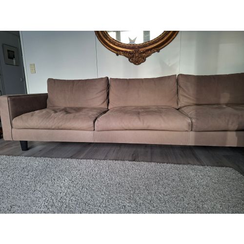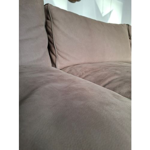 High-quality Italian Baxter Stoccolma designer leather sofa – a rare find. Design by Paola Navone. A truly premium piece offering exceptional comfort – the cushions gently adapt to the sitter’s posture for a relaxed and supportive feel. A wide 3-seater sofa that comfortably seats up to five; each seat cushion is approximately 90 cm wide. The leather is a matte nubuck with a classic warm cognac tone, making it easy to pair with various interior styles.Read more