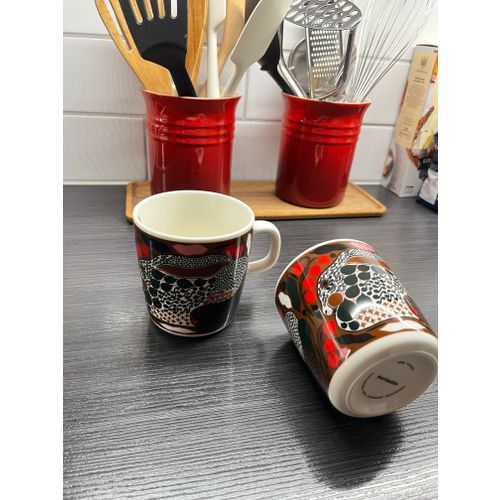 Oiva - Rusakko mug, 4 dl, white - brown - dark green - red