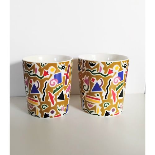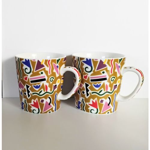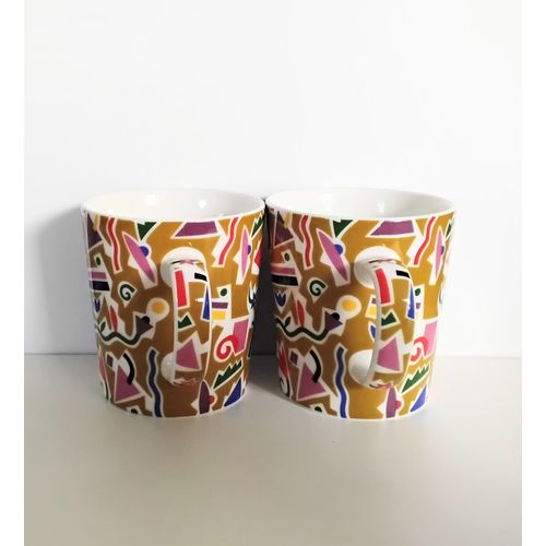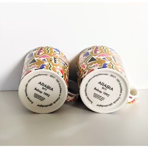 Bebop mug set of 2, Finland. Independence Day 2017, 100 years, Design Heikki Orvola 1992, Arabia. The fine pattern is also Orvola's handiwork. The mugs are without labels, but very clean and intact, nothing visible on the surface.