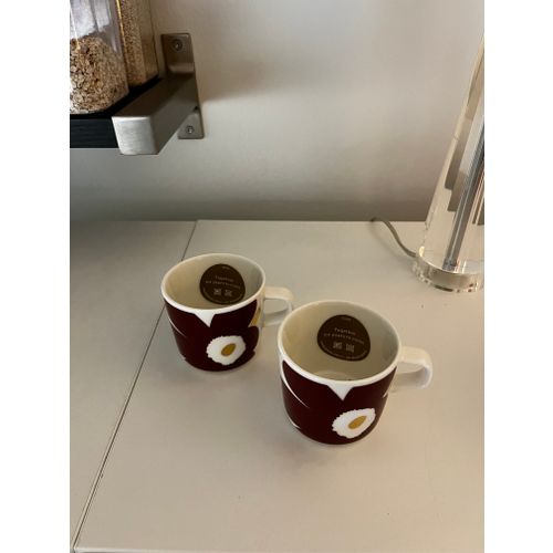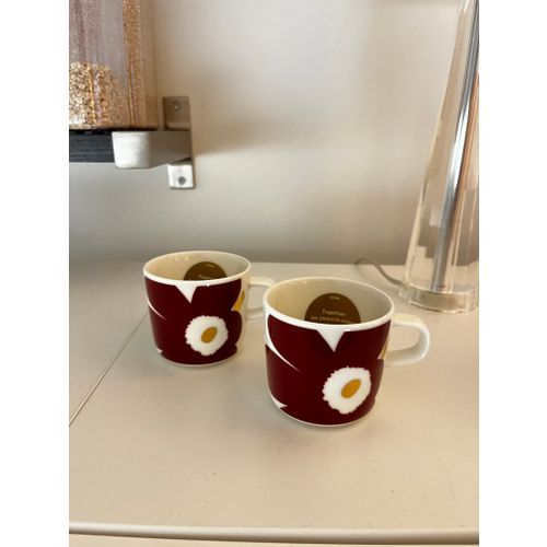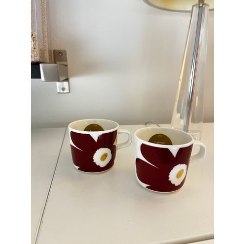 Oiva - Juhla Unikko coffee cup 2 dl, white - wine red - gold