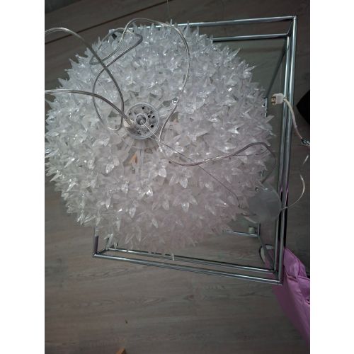 The lamp is missing a removable "flower". (shown in the pictures). It is not noticeable when in use as it is facing the ceiling.