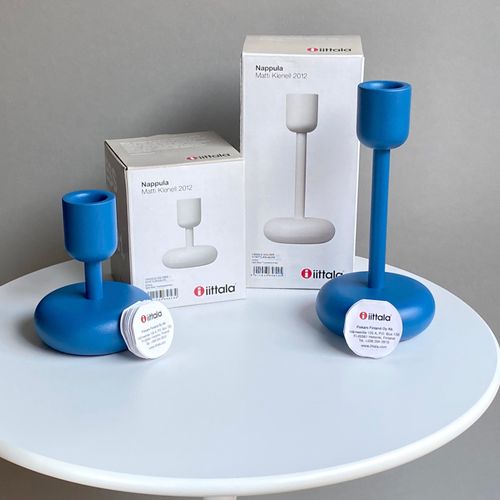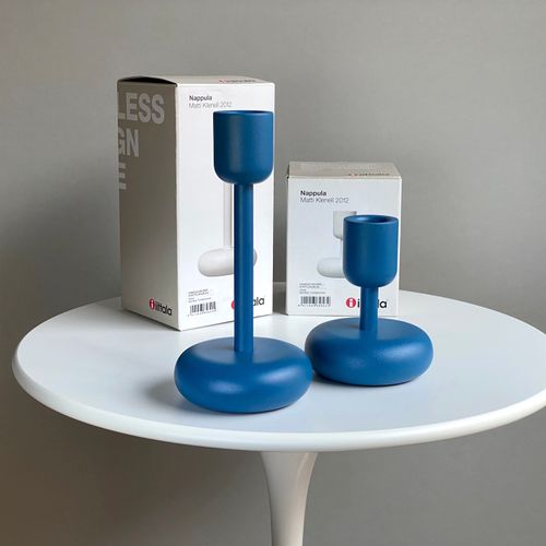 Iittala Nappula candleholder, dark blue, set of 2: 107 mm + 183 mm. Unused, perfect condition with original packaging and label. Reliable shipping available on request. Please ask for the shipping rate to your country.