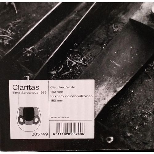 Iittala Claritas art glass, signed Timo Sarpaneva Iittala 2013. Colors clear, red, white. Height 180mm, weight 4kg. Unused, kept in packaging.