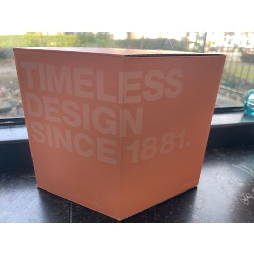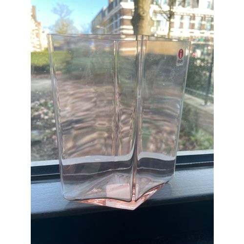Iittala Ruutu vase, 115 x 140 mm, salmon. New in original box. Never used and therefore in perfect condition. The French brothers Ronan and Erwan Bouroullec designed the Ruutu vases for Iittala. Each Ruutu piece is unique: they are mouth-blown into a steel mold and then polished by hand. The difficult shape of the vase requires 24 hours of production and seven skillfull professionals.