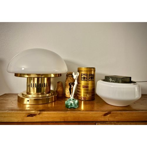 For sale is a gorgeous, timeless Ornon Bau 971-504 lamp. Designer Klaus Michalek. The stylish lamp has an opal white glass dome and a gorgeous brass base. The versatile lamp is suitable for both ceiling and wall mounting.