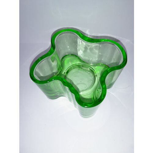 Apple green Aalto candle lantern from the Aalto Collection series manufactured by Iittala. Production of this color ended in 2014. The lantern is 55 mm high and 105 mm in diameter.
