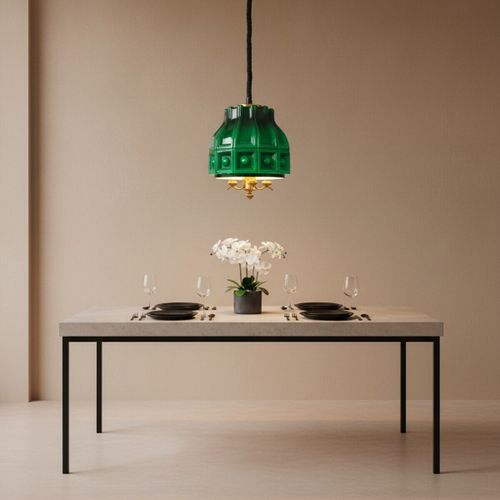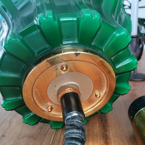 Vintage green glass pull-down hanging lamp by Helena Tynell