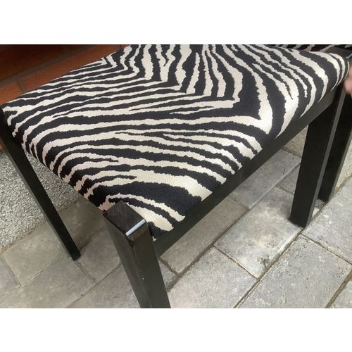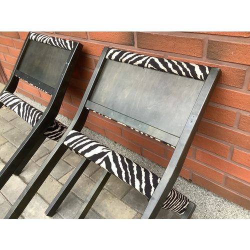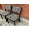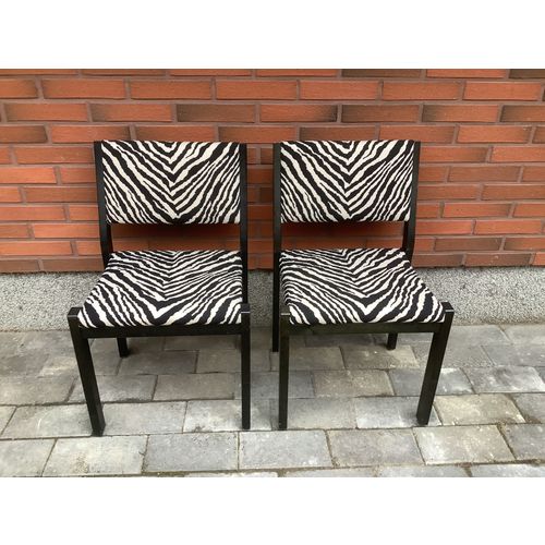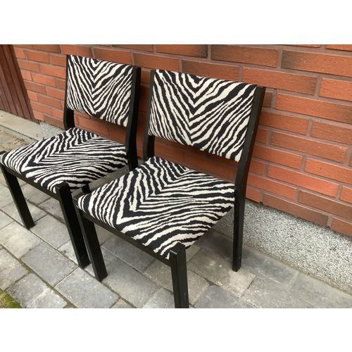 Artek 611 wooden chairs. Black stain and zebra fabric. The upholstery of the chairs is in really good condition. There are small marks on the wooden parts and small screw holes behind the backrest, otherwise ok.
