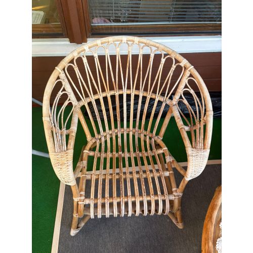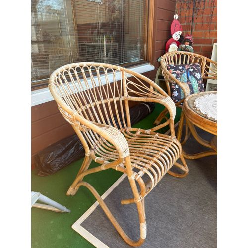 Parolan rottinki Lumikenkä chair. Has been on a glazed balcony. Condition as shown in the picture.