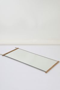 Suspended mirror, 50 x 114 cm, white lacquered oak - brass