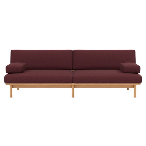 T19 Spoke Sofa with armrests, oak - dark red Kvadrat Autumn 0681