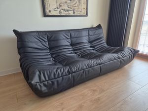 Togo sofa and ottoman, black leather
