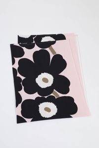 Unikko cotton fabric, light pink - charcoal - light brown