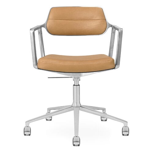 453+ Swivel tuoli, kiillotettu runko - kamelinruskea nahka, pyörät