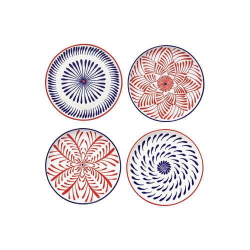Bazaar aamiaislautanen, 4 kpl, punainen - sininen