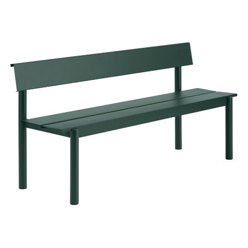 Linear Steel selkänojallinen penkki, 170 cm, tummanvihreä