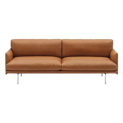Outline Soft sohva, 3-ist., kiillotettu alumiini - Refine nahka konjakki