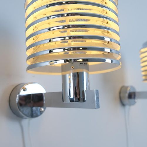 Kaunis sarja, johon kuuluu 4 kromista V-299-seinävalaisinta, jotka on suunnitellut Hans-Agne Jakobsson ja valmistanut hänen oma yrityksensä Markarydissa, Ruotsissa 1950-luvulla. Valaisimissa on täysin kromattu runko ja kerroksellinen varjostin, joka levittää lämmintä valoa tasaisesti ympäröivään tilaan. Valaisimet ovat kooltaan kompakteja ja sopivat helposti niin sisä- kuin ulkotiloihin. Kaikki tämän sarjan valaisimet ovat hyvässä kunnossa, ja niissä on valmistajan leimat (katso kuvat).Lue lisää