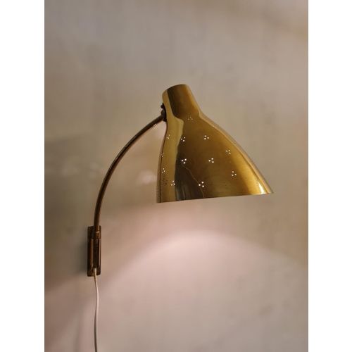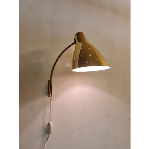 Lisa Johansson-Papé säädettävä seinävalaisin 50-055 rei'itettyä messinkiä, Orno 1950-luku