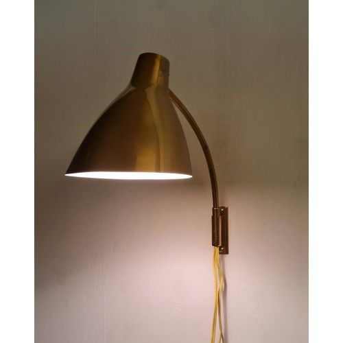 Kaunis Lisa Johansson-Papén suunnittelema säädettävä seinävalaisin, kokonaan messinkiä. Valaisimessa on pallonivel, joka pitää varjostimen paikoillaan ja mahdollistaa sen kääntämisen kaikkiin suuntiin. Myös varsi on säädettävissä sivusuunnassa. Lamppu on täysin alkuperäisessä, hyvässä kunnossa ja siinä on upea patina. Täydellinen yöpöydän valoksi tai lukuvaloksi. Lisa Johansson-Papé (1907–1989) oli suomalainen muotoilija, joka tunnetaan erityisesti valaisinsuunnittelustaan.Lue lisää