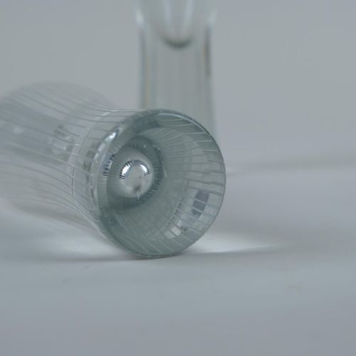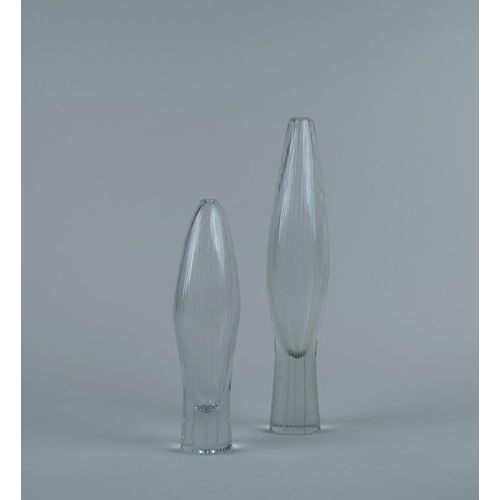 Kaksi Tapio Wirkkalan viivakaiverrettua lasiesinettä, malli 3561, Iittala, 1950-luku