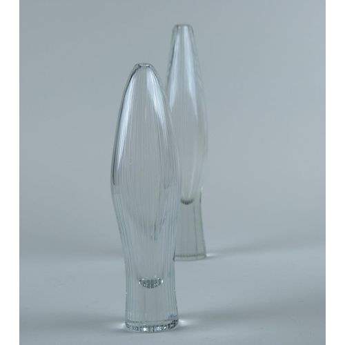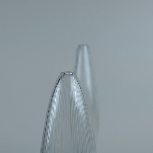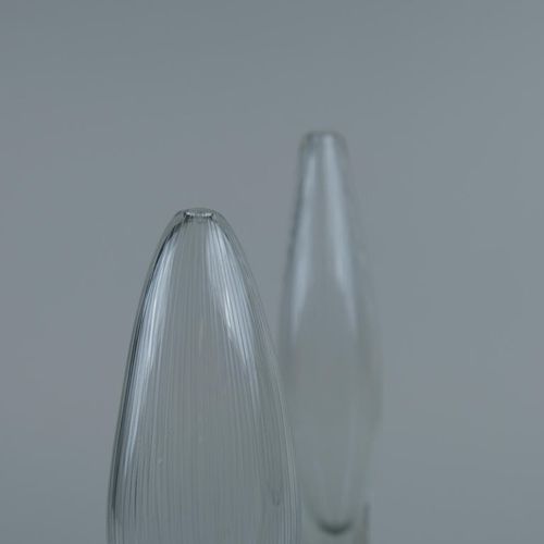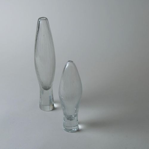 Kaksi Tapio Wirkkalan suunnittelemaa Tulppaani-taide-esinettä / maljakkoa, malli 3561, Iittalalle. Luonnosta inspiroituneelle Wirkkalalle nämä teokset eivät olleet poikkeus – hän sai ideansa nupuillaan olevista tulppaaneista juuri ennen niiden puhkeamista kukkaan. Mallia valmistettiin kahdessa eri koossa: 32 cm ja 26 cm korkeina. Maljakot ovat suupuhallettuja muottiin ja viivakaiverrettuja. Molemmissa on kaiverrus Tapio Wirkkala Iittala.Lue lisää
