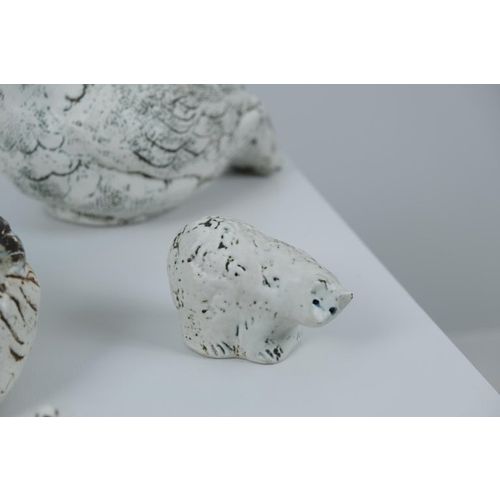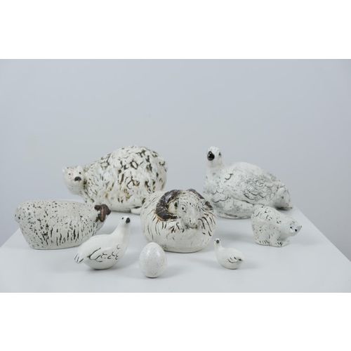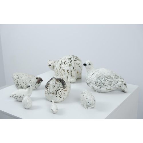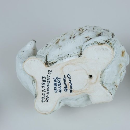 Sarja Henrik Allertin Pentikille suunnittelemia eläinfiguureja 1980-luvulta. Kokonaisuuteen kuuluu seitsemän eläintä ja yksi muna. Kaikki kappaleet ovat signeerattuja ja leimattuja, ja ne ovat hyvässä kunnossa. Eläimet ovat lammas, kolme metsoa, kaksi karhua, pässi ja muna. Pituus 6-24 cm Korkeus 4,5-16 cm Leveys 3-14 cm (Pienimmän ja suurimman figuurin mitat) Henrik Allert on ruotsalainen keraamikko ja kuvanveistäjä, joka tunnetaan ilmeikkäistä ja yksityiskohtaisista keramiikkateoksistaan.Lue lisää