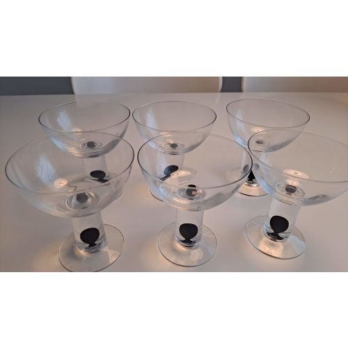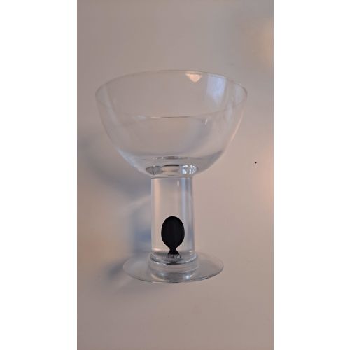 Hieno jälkiruokamalja upotetutlla mustalla oliivi yksityiskohdalla. Valitettavasti Nuutajärven lasin tarraa ei tuotteissa ole enää.