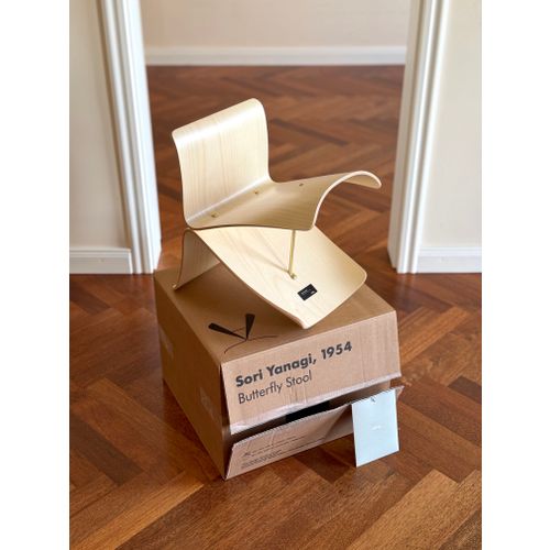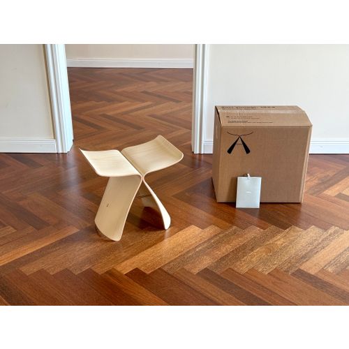 Vitra Butterfly -jakkara, vaahtera. Uusi ja käyttämätön, täydellisessä kunnossa, alkuperäispakkauksessa ja -tarralla. Luotettava toimitus saatavilla pyynnöstä. Kysy toimituskuluja maahasi.