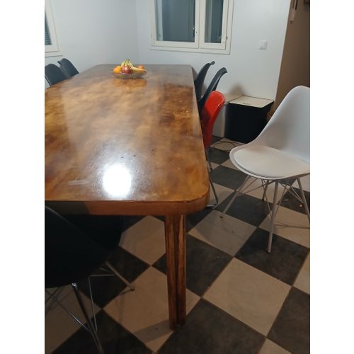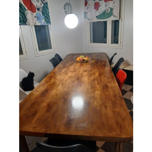 Neukkarin pöytä, koivua. Aikoinaan käsitelty petsilakalla. Väli- ja päätyjalat. Siisti kunto.
