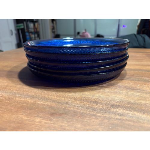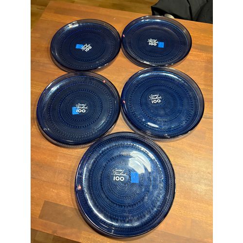 5 kpl:n setti, uudet Suomi 100 Kastehelmi -lautaset, 248 mm, ultramariini. Rajoitettu erä.